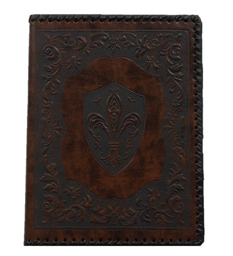 Prachtige lederlook kaft met daarop een afbeelding van een fleur-de-lys oftewel een franse lelie.