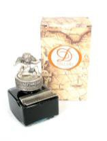 Deze glazen inktpot is gevuld met zwarte inkt en heeft een handige, pewter oplegger om de (kroontjes)pen op te laten rusten.