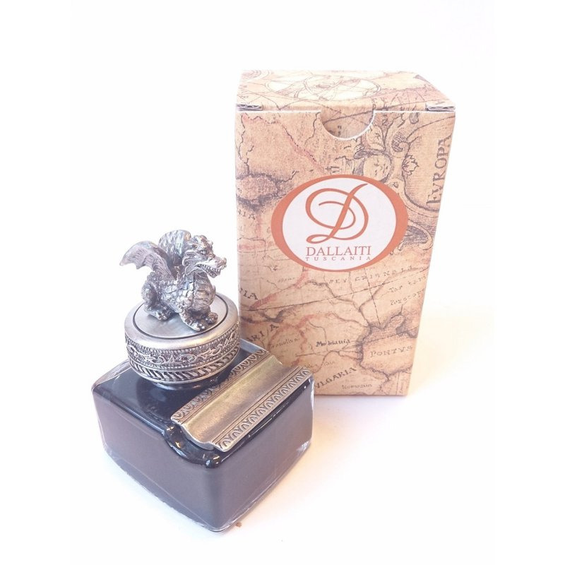 Prachtige, rechthoekige inktpot met daarop een draak.