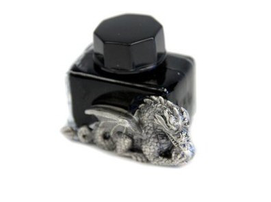 Prachtige, kleine, rechthoekige inktpot met daarop een draak.