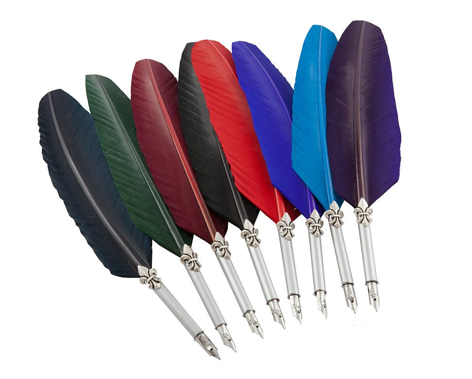 De schrijfveren zijn verkrijgbaar in de kleuren donkerblauw, zwart en bordeaux.
