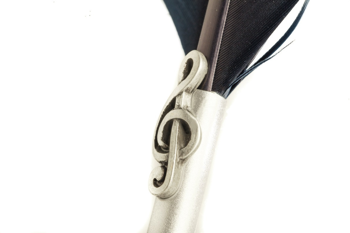 De veer heeft een gladde greep met daarop een strakke muzieksleutel, ook wel sol sleutel genoemd.