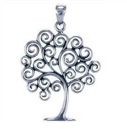 Prachtige hanger in de vorm van een levensboom met krullerige takken.